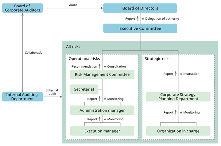 The Corporate Strategy Planning Department and the Risk Management Committee report the management status of each risk to the Executive Committee and the Board of Directors to maintain the effectiveness of risk management.